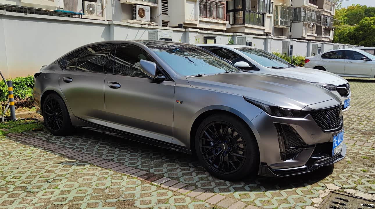 首先是外观方面:硬朗的肌肉线条,配上溜背造型,使得整个车看起来非常凶悍,棱角分明。配上后贴的电光深邃灰的改色膜,不同角度的明暗对比把CT5的肌肉车身线条更加凸显出来,自带的金属质感也让这个车看起来更加的硬朗。