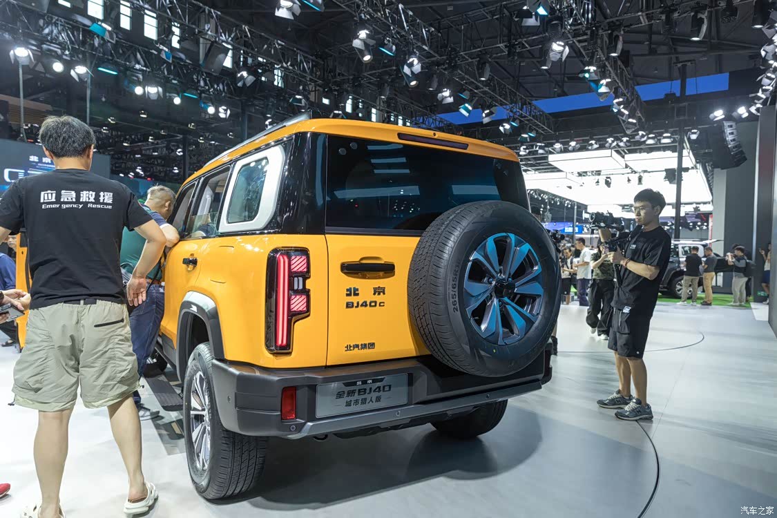 外观来看,虽然是换代车型,但是全新BJ40依旧采用了北京越野家族化的设计理念,窄条幅式前格栅内部加入五孔造型元素,并进行黑化处理,配合两侧圆角矩形的大灯组以及下方凸起的前保险杠,凸显其硬核气质。科技感和现代感比老款要好太多了。 车身侧面来看,新车车身线条平直舒展,搭配平直的车顶造型,有利于提升车内的乘坐空间。尾部方面,该车采用竖状尾灯组,配合经典的外挂式备胎以及侧开门开启结构,辨识度进一步提升。轮眉灯除了照明,行驶当中还可以当示宽灯使用。 车身尺寸方面刚刚介绍过了,不过有个数据要具体说下(那就是去掉表车后小书包和前杠,车身长度大概就是4.5米了,这是个比较灵活的越野尺寸)儿配置方面,根据车型不同提供电动踏板、全景天窗、侧窗装饰框、牵引专用装置、侧视摄像头等。同时,今天的车子我还看到了电动踏板。 全新BJ40的车尾使用了目前越野车型常见的比较平整的设计思路,备胎使用了外挂的方式固定,竖型尾灯最外侧内部集成了转向灯功能,不过要说的是尾灯辨识度很高。 外观上面,我个人认为全新BJ40有变化,但是和坦克300比,只能说各有千秋。