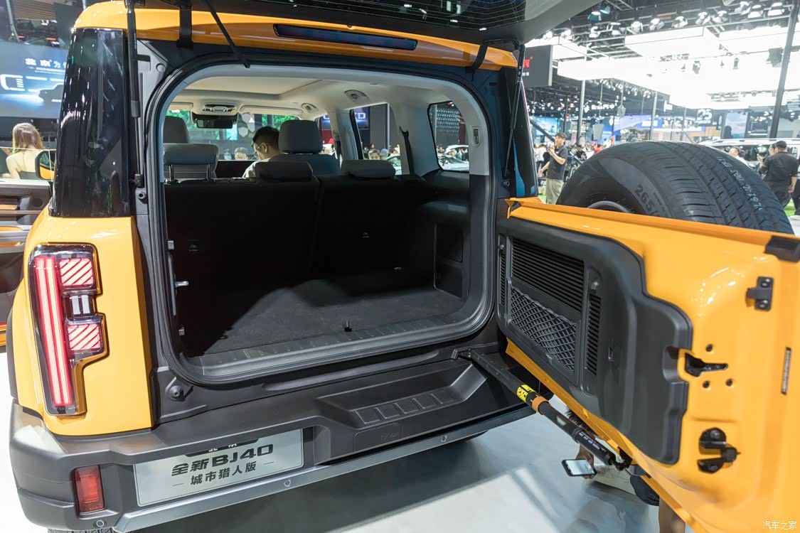 和现款的BJ40相比,全新BJ40的座舱简直就是进行了一场华丽的蜕变,与外观同样在保留了品牌硬派基因的同时,做工、配色以及材料的选择上都进行了无差别化的升级。越野车竟然也可以变的豪华了,这就是我对全新BJ40内饰最大的感受。不仅大尺寸的联屏用上了,多处镀铬和钢琴烤漆的组合也让人眼前一亮,尤其是副仪表台部分设计,已经细致到每个按键了。而且你敢相信,咱新车还有无框玻璃的设计?! 当然车内用料相当扎实,车内软性包裹的地方面积很大。对了,两个屏幕和理想的一样,换挡杆还变成电子的了,总结一下,就是车内变化是变的年轻了,更符合年轻人喜好了,这也是坦克300之前俘获一众车友的一大原因吧。 最后全新BJ40的尾门开启方式采用了分体式,下层为侧开,上层为向上扬起。侧开尾门的液压杆带有锁止装置,放置在坡道停车打开时尾门回弹发生危险。门板上设计有网兜,后备厢盖板下方设计了储物格子,虽然深度略浅,但胜在数量不少,后尾门的这种组合方式,也蛮让人觉的有新意的。