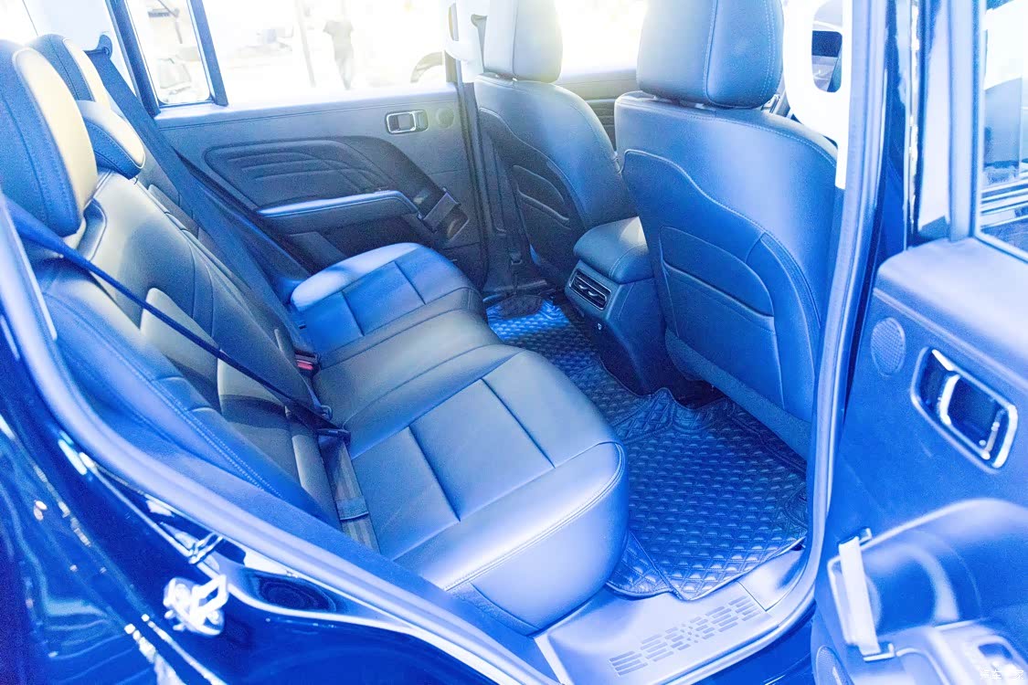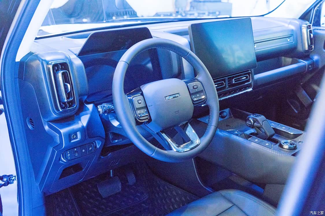 配置方面主要有540°透明影像、50W的手机无线充电、座椅通风、加热等功能。 越野性能方面新车配备了后桥差速锁,能够在单侧后轮打滑时锁死后桥差速器,拥有更强大的脱困能力。新车有7种驾驶模式可供选择,包括雪地,沙地,泥地模式等,并且还配备了L2级智能驾驶辅助系统。
