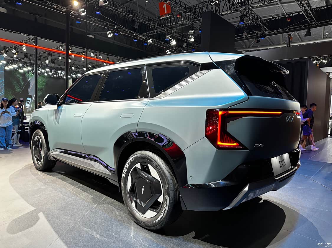 这台车给我的第一印象就是很有力量感,起亚这几年在国内的销量一直都在下滑,不过这台起亚EV5使用了很多概念车设计元素,车的前脸用全新数字虎啸式前格栅,再加上底部黑色涂装让这台车看起来还是很有运动感和力量感的。这台车能不能改变起亚的低迷的销量,就让我们拭目以待。