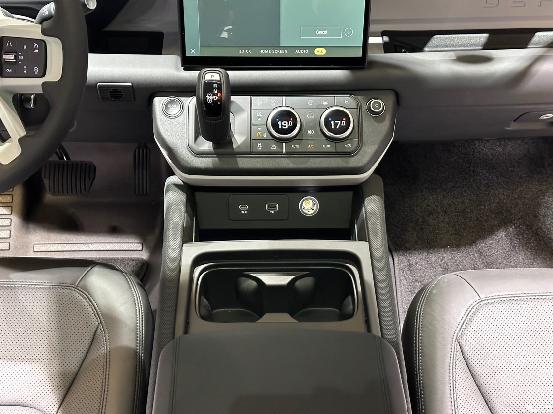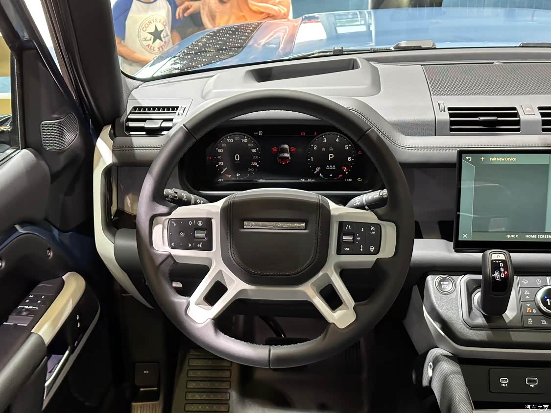 内饰方面,路虎卫士90的科技感还是比较强,全液晶仪表和触控式中控屏带来的科技感和实用性都比较强。挡把的位置设计在了靠近中控屏幕的位置,给我的感觉有点怪怪的,而且操作起来不是特别方便。右侧是非常多的实体按键,主要是空调控制和车身控制方面的,方便快速操作。
