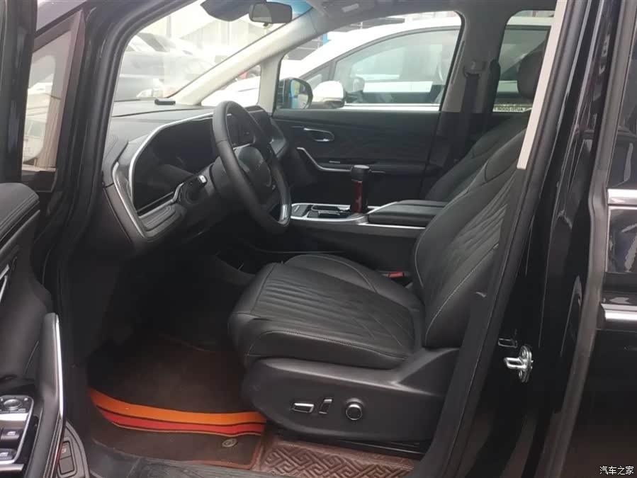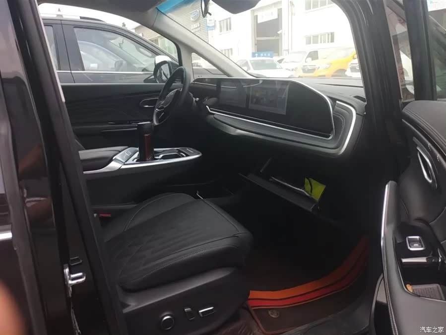 这台车不仅拥有着非常吸睛的外观,而且内饰的设计理念也同样是很新颖的,首先就是两幅样式的方向盘就很符合它这比较简约的内饰风格,其次就是贯穿整个中控台的大屏幕也营造了非常强烈的科技感,包括车内的用料品质也是真的好,对于这个级别的MPV车型来讲车内的用料和做工都非常下本,所以整个内饰看起来还是很高档的。
