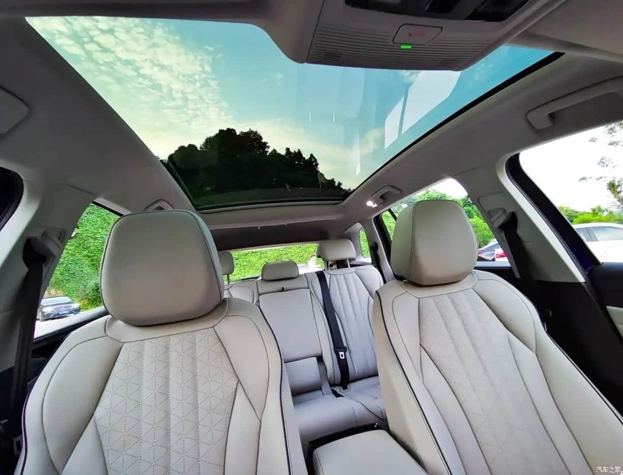 内饰一如既往的大众味,摸到的地方都是比较软的材质,再加上氛围灯的点缀简直不要太美。 自从开了大众Id6x,特别喜欢晚上开夜车,因为整个氛围看着美,心里更美啊。