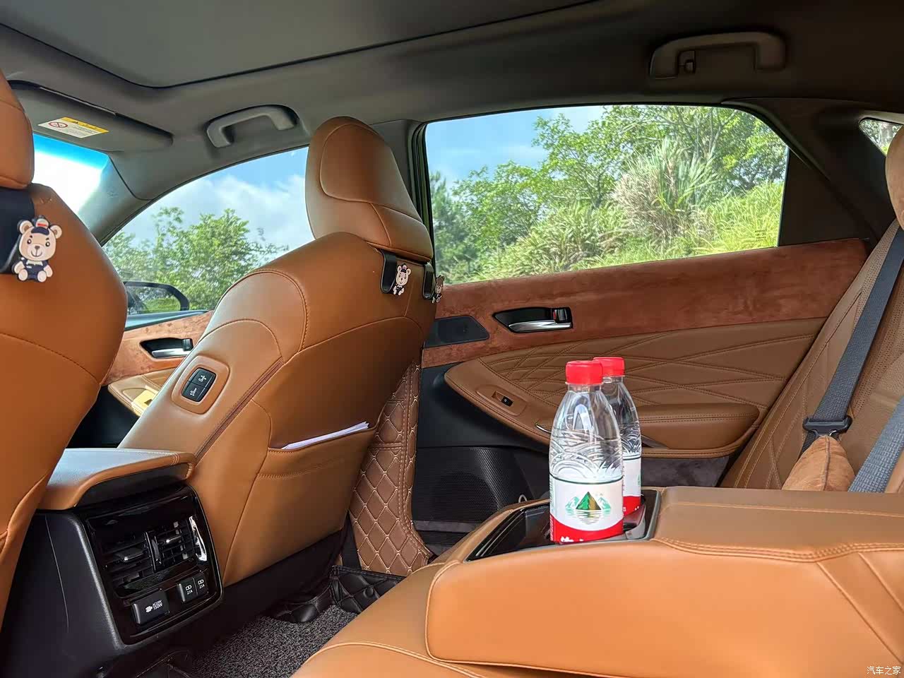 黑色的外观,搭配棕色内饰,那绝对是眼前一亮!我喜欢折腾,提车后不久,门边饰板就被我添加了同色系的鬃毛装饰,主打一个帅!很多人担心棕内不好保养,真心不会,唯独要小心的就是小孩在上面图画,这个比较麻烦,要做特殊处理,其余都是小问题,妥妥的自拍神器!