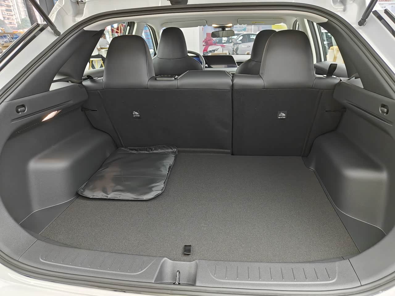 启辰大V DD-i超混动的空间表现也不错,得益于超宽的车身,身高180cm的我在前排拥有2拳的头部空间,在后排拥有2拳的腿部空间以及3指多的头部空间。近纯平的地台和超大尺寸的全景天幕,对于后排乘客的照顾还是十分到位的。后排的坐垫十分的厚实,坐垫的高度和长度出色,坐上去能够给大腿内侧一个良好的支持性,乘坐时舒适性表现优秀。 前排座椅保持不变,体验者进入后排,可以看到其头部空间依旧有1拳,腿部空间超过了2拳。与此同时,该车的后排地台几乎纯平的布局,加上面积很客观的全景天幕,所以即便后排乘坐3个人,舒适性也可以得到保障。 根据官方的数据,该车的后备厢的标准容积为605升,最大可拓展至1520升,空间上是足够满足日常一家三口/四口人的出行需求的。后备厢下隔板打开之后里面是一些随车的工具