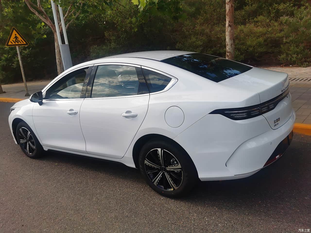 车辆外观流线型,铝合金轮毂,有棱有角,灯光是LED光源,贯穿式的尾灯,颇具现代感,适合年轻人的喜爱,唯一不足车尾后备箱有点太厚重有点笨重的感觉。