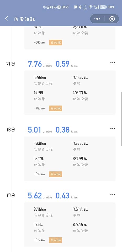 七千多公里大概有四千五百公里的高速,上车就开空调,高速最低油耗表显4.9,市区6.2,实际上按加的油算高速5.01,市区最高7.76还在接受范围