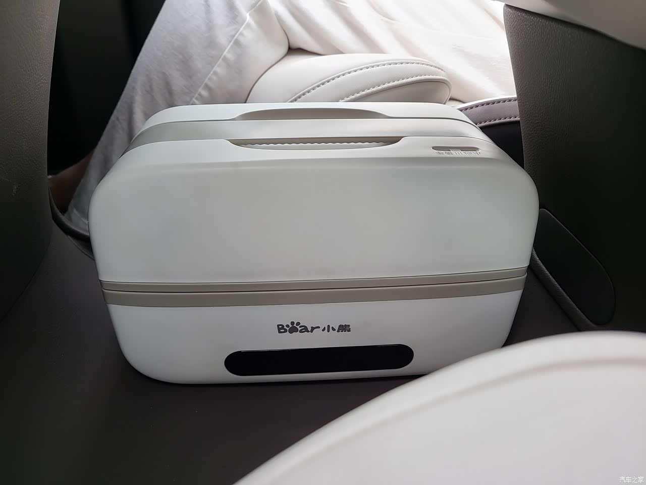 中控屏下的储物空间还是很大的,能放下我的加热饭盒。