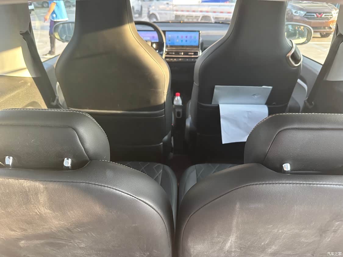 小小的车身空间正合适,坐在车里不显得车里空间小,车里能容纳四个座位,像我身高1米8的个子坐在前排就很宽敞舒适了,坐在后排就稍显有点局促感,腿不能伸直,只能蜷着腿,平日里我一个人开得多,不坐人情况下,后排座椅支持纯平放倒,放倒以后就是个不小的后备箱空间了,大的行李箱之类的可随意放了,实用性蛮强的。