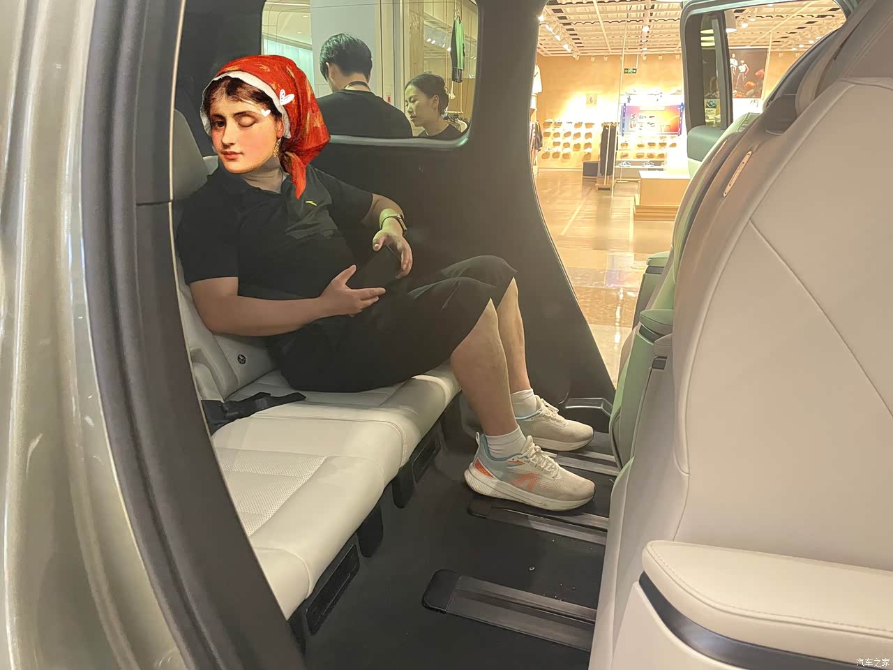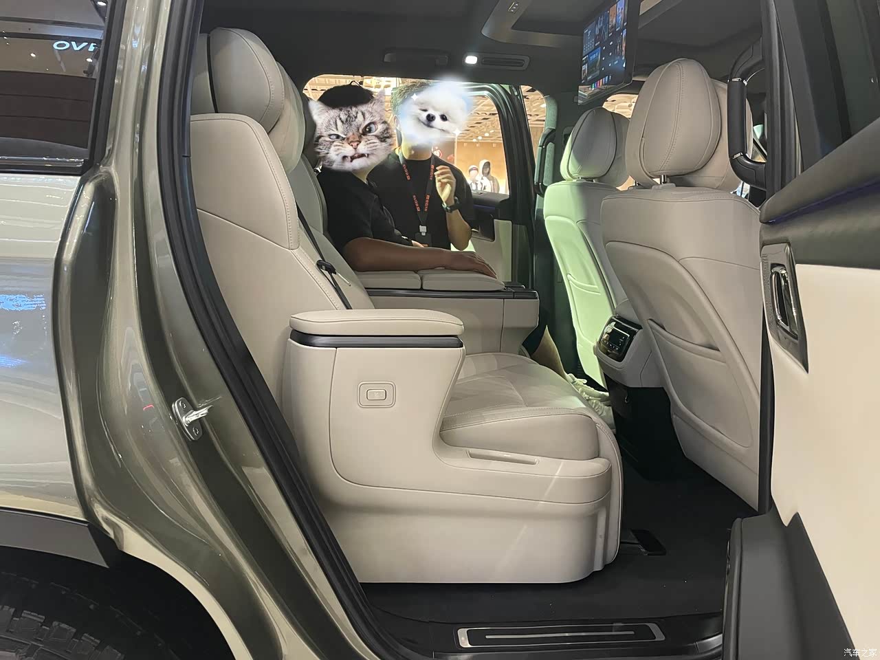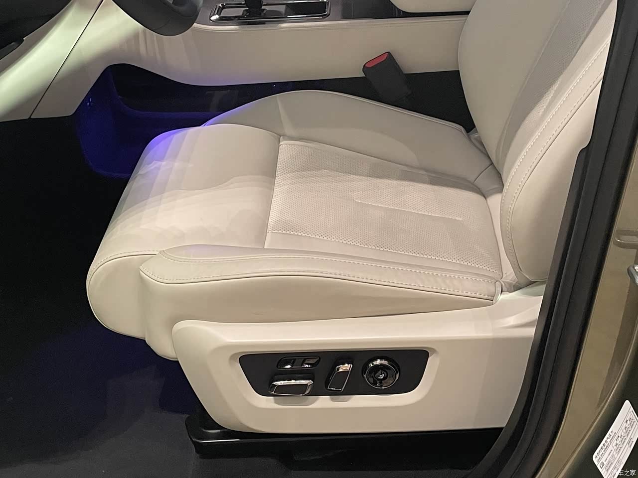 如图所示,体验者身高173cm,不管坐在第二排还是第三排,空间都是十分充裕,有种坐飞机头等舱的感觉。极石01是一款中大型SUV,尺寸为5050/1980/1869mm(长/宽/高),轴距为3010mm。座椅布局方面,提供6座及7座供选。7座版前排座椅配备了加热、通风、按摩功能,二排座椅配备了加热及按摩功能,二三排座椅可放倒,能放置官方定制的2米x 1.3米双层海绵气垫床。6座版配备超豪华二排航空座椅,并拥有三档通风、加热和8点式气袋按摩功能。满足了不同家庭的远行需求。