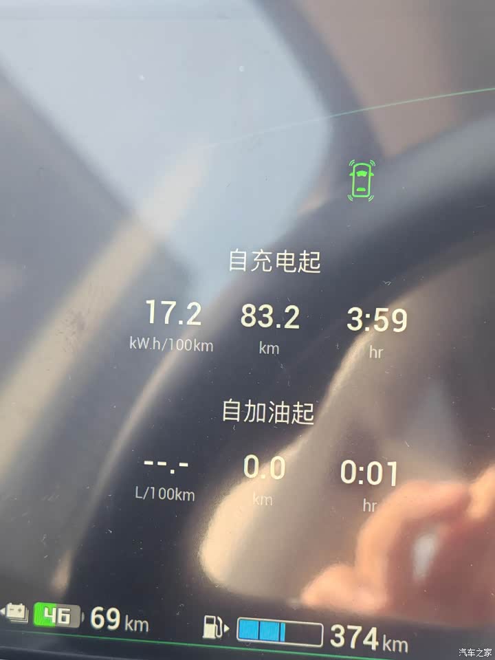 新车还没有完全把纯电的续航开完,不过感觉应该可以开到160至190公里之间的。这几天开下的电耗,可以看图片,真的比老款省电很多。这个确实没有吹牛。