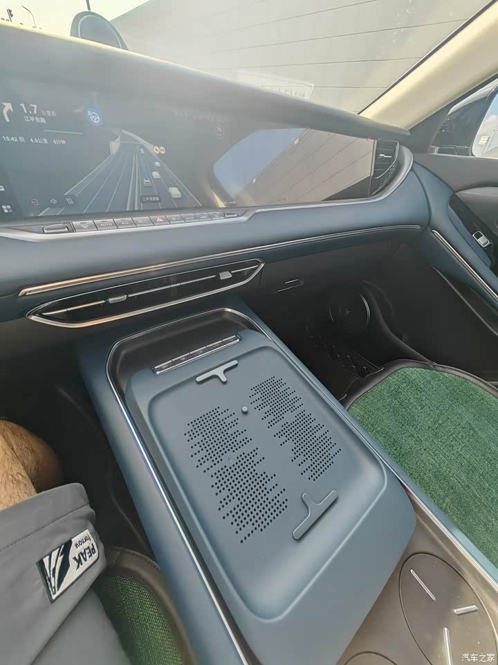 我身高185,体重200,驾驶座位空间何时,视野也比较开阔。中控台的50w无线充电很棒,还有通风功能,手机不需要充电时可以放置在右侧,这个设计很棒。