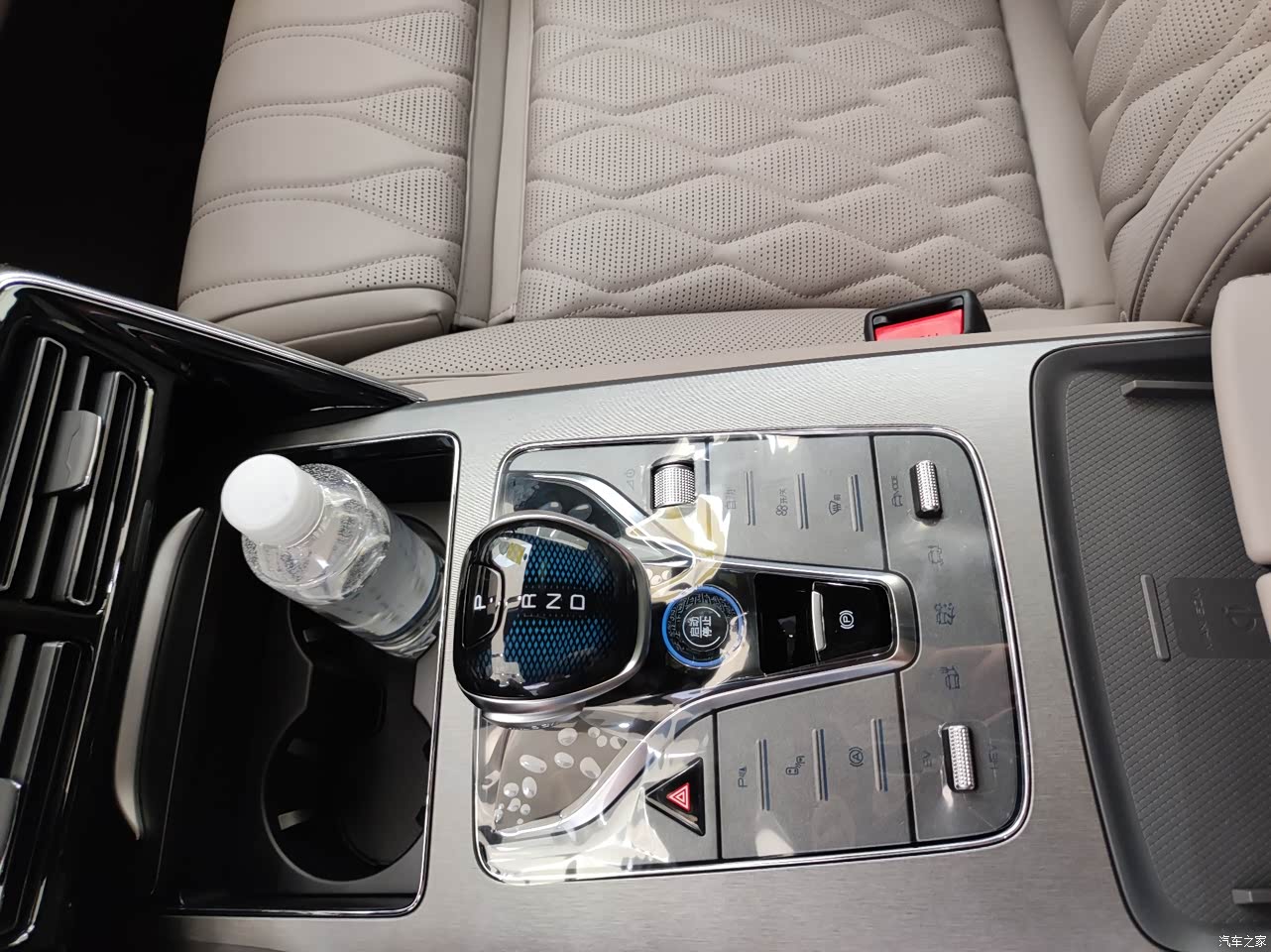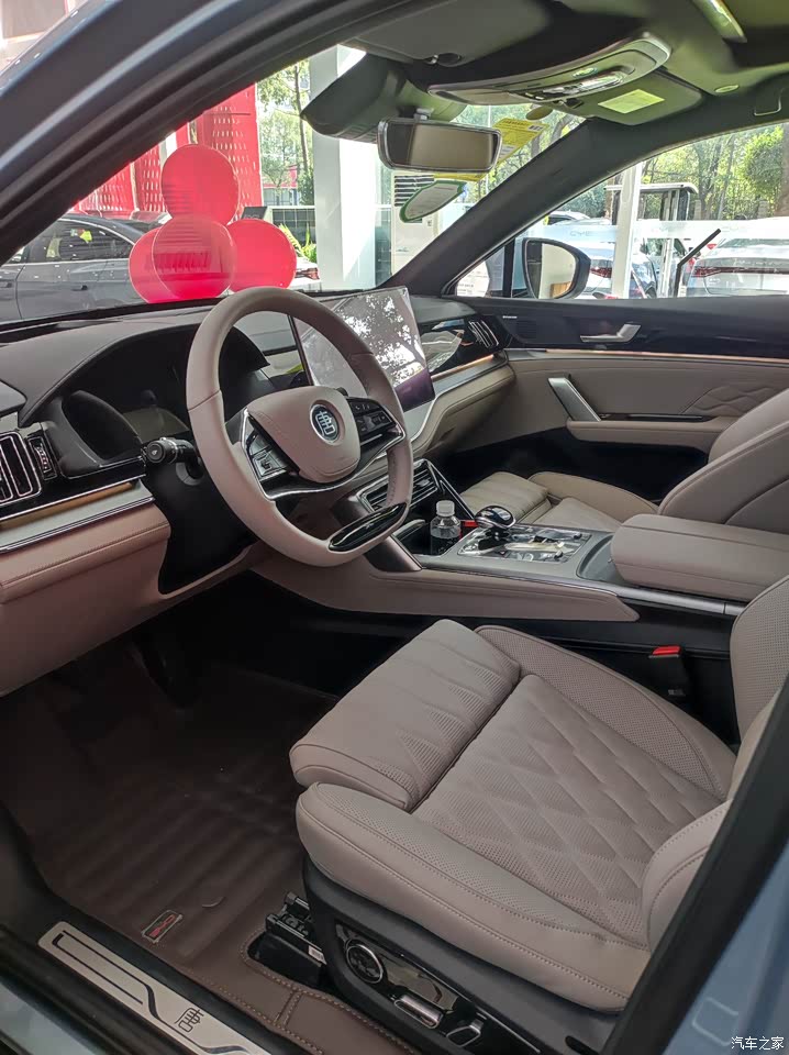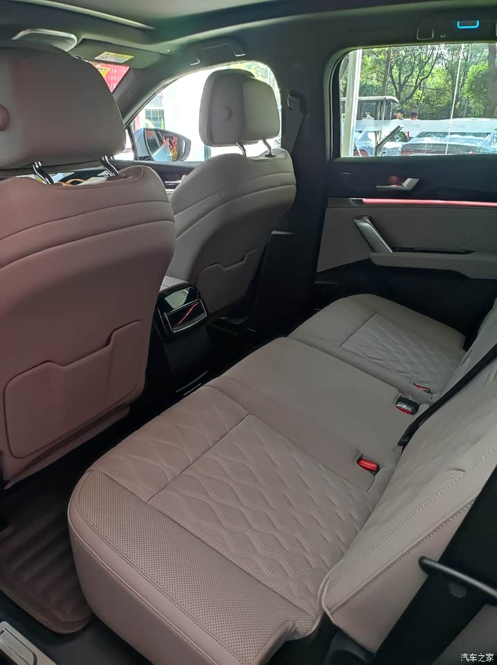 我也不懂啥车,老公可兴奋了,像似得到了一件心爱的玩具似的,这里看看,那里摸摸。一直问个不停。我们看到的这款是中款车型,近29万的车,听他吐槽了两个点。一是这么高级感的车子方向盘居然不是电动调节的,这里他觉得是要减分的地方。二是第三排坐小朋友还是可以的,坐成年人腿有点难受。其它都非常满意。