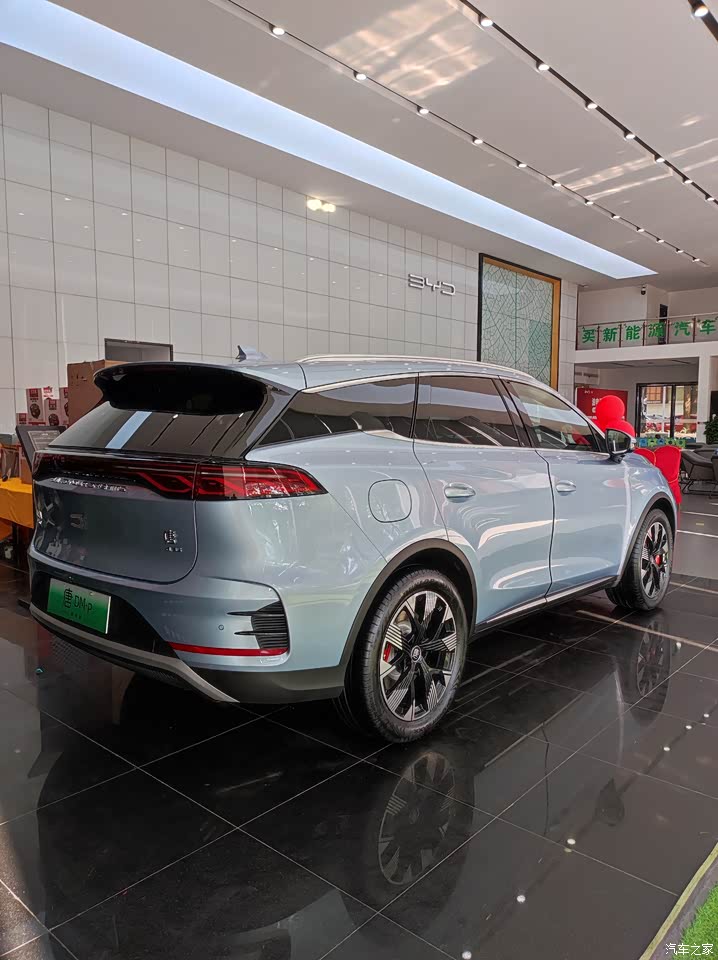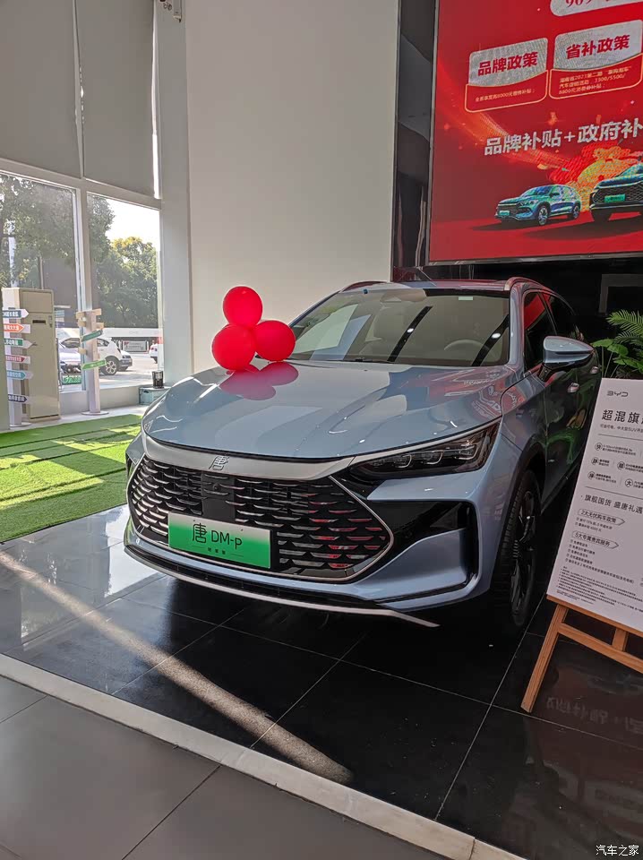 这不听说比亚迪上了一款混动的新能源SUV唐DM-P,不仅百公里加速可达4.3S,并且纯电的续航能跑到215KM,于是趁着周末休息的空档就拉着喜欢研究车子的老公一起来了比亚迪的4S店研究研究欣赏欣赏。刚进门就随着销售热情的指引我们就看到了唐DM-P,一台蓝色的中大型SUV,给我感觉清爽又不失稳重,气势非凡,这颜色真新颖啊,看惯了路上黑白红银之类千篇一律的颜色,这冰蓝色确实让人耳目一新的感觉。老公说最牛的是他百公里加速4.3S,这相当于什么?这可是超跑的成绩,重要的是它的体重达2.4吨,比超跑要重的多,你说恐不恐怖!而超跑需百万的价格,而比亚迪不到30万就给到了这个体验,真的很牛。