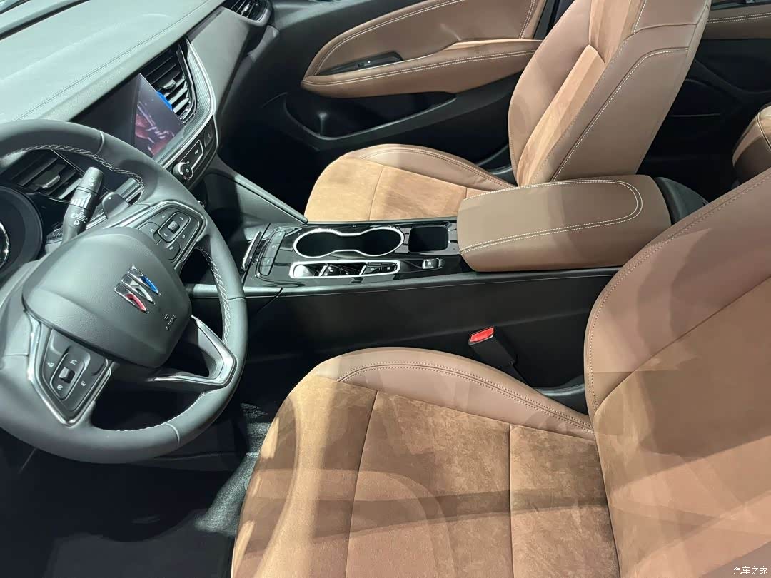 内饰上设计风格还是别克的家族化的特征,车中控屏幕稍微有点小,正常来说质感还可以,车上的材质包括颜色搭配都很时尚。中控处采用的实体按键用起来还挺方便的,车上材质不错软包的质感比较多,缝线做工都很不错,座椅还是皮质和翻毛皮混合的质感,一坐进车里就能感觉到很有质感,从视觉效果来说也很不错,就是看起来没有那么洋气就只能说是稳重。