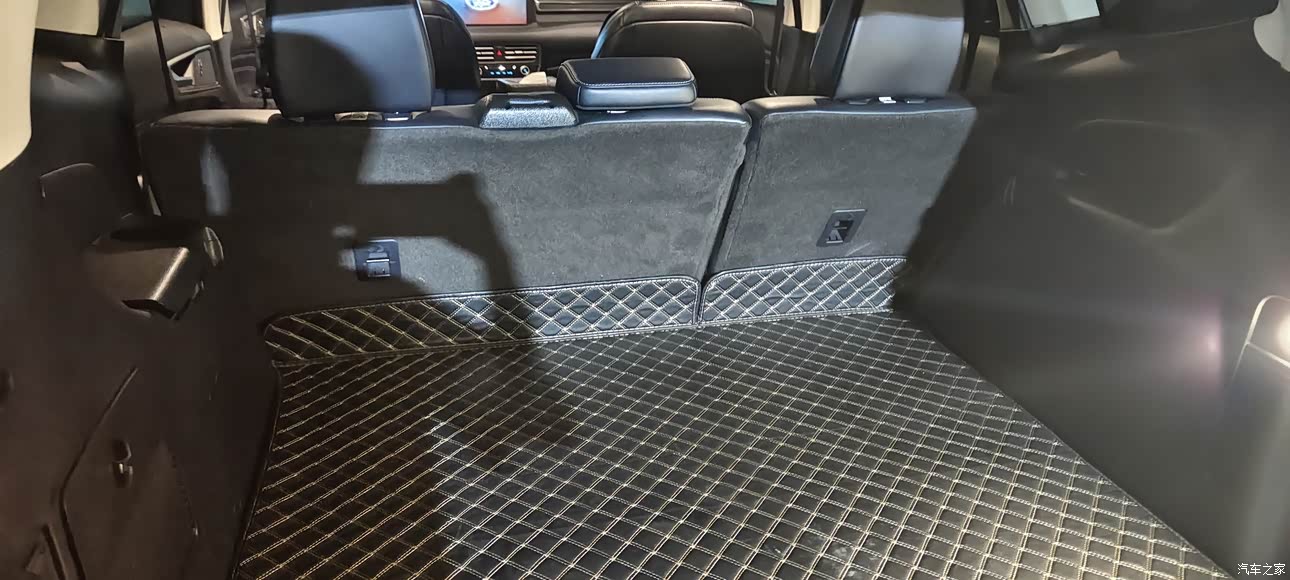 由于是五座车型所以相较于上一个版本7座车型来说去掉了第三排座椅,所以铂锐的后备箱在不放倒的情况下依然很大,放倒第二排座椅可以躺下两个1米8的成年人,空间依然很宽敞,二排座椅不可以完全放平。