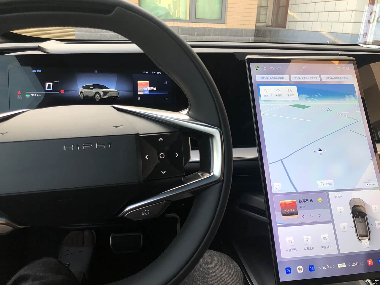 烟云紫有点白灰色的感觉,打孔皮,舒适性还不错。很多细节都体现出高合造成的用心。座椅通风和按摩挺舒服的,夏天空调和通风真的是最佳组合,竟然是标配。因为还没到冬天,我一直期待后排能够加热,这次终于能实现了。