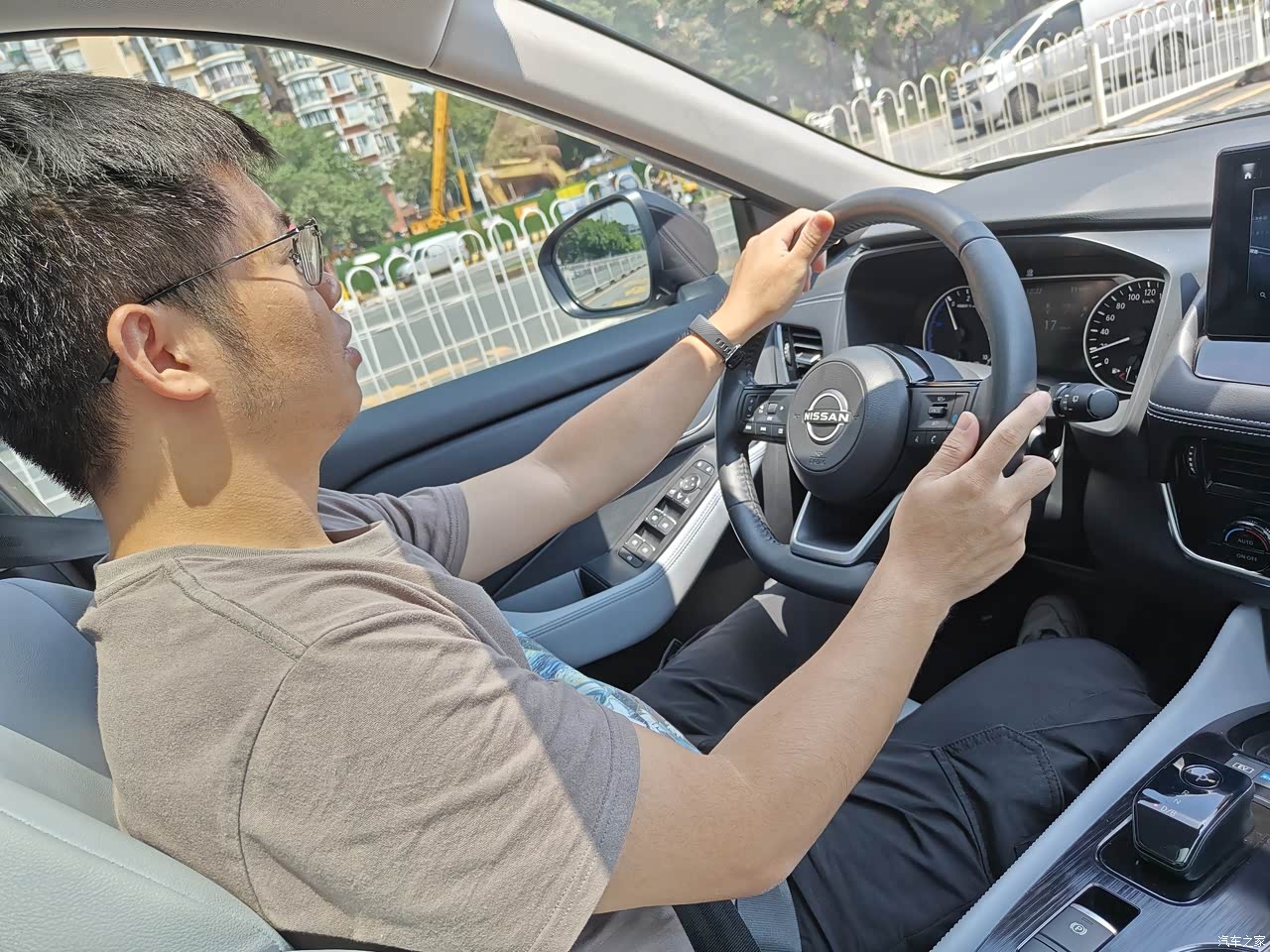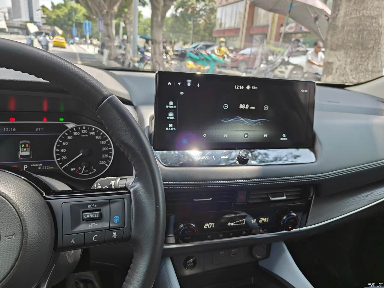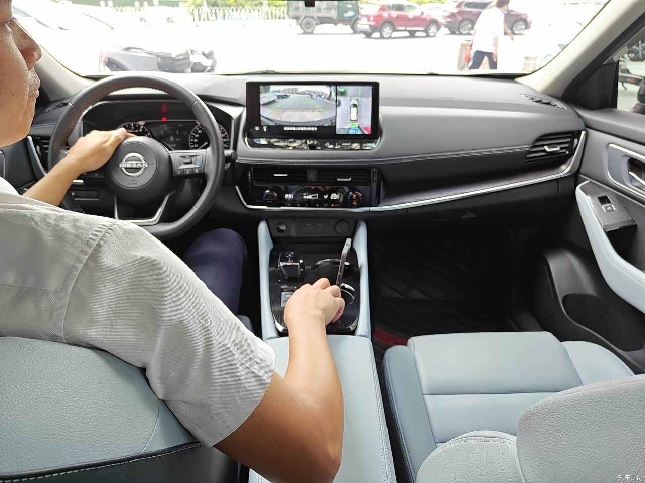这款豪华版奇骏e-POWER用了7英寸的液晶仪表+12.3英寸的悬浮式中控屏,这套组合虽然没有太强的视觉冲击力,但日常使用足够了,像导航、音乐、语音控制等功能一应俱全;奇骏e-POWER车内用了不少软质用料覆盖,触感还不错,但就是整个中控台设计得比较“老气”,不如如今流行的简洁风更直观。 真皮方向盘采用了“D型”设计,无论是握感还是视觉效果,都能给人满足感。美中不足的是,方向盘左右两侧的功能区设计、布局过于平淡,这里可以再优化一下。