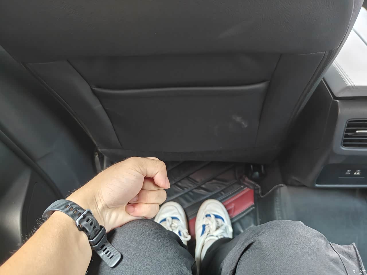 奇骏e-POWER豪华版超混动的空间表现也不错,得益于超宽的车身,身高180cm的我在前排拥有2拳的头部空间,在后排拥有2拳的腿部空间以及3指多的头部空间。对于后排乘客的照顾还是十分到位的。后排的坐垫十分的厚实,坐垫的高度和长度出色,坐上去能够给大腿内侧一个良好的支持性,乘坐时舒适性表现优秀。 前排座椅保持不变,体验者进入后排,可以看到其头部空间依旧有1拳,腿部空间超过了2拳。与此同时,该车的后排地台几乎纯平的布局,加上很客观的全景天幕,所以即便后排乘坐3个人,舒适性也可以得到保障。 根据官方的数据,该车的后备厢的准备质量为1851kg,最大满质量至2280kg,空间上是足够满足日常一家三口/四口人的出行需求的。后备厢下隔板打开之后里面是一些随车的工具但是,新奇骏并没有将以前的“大沙发”特点传承下来,若是将坐垫长度加长,整车的舒适性将更上一层楼。