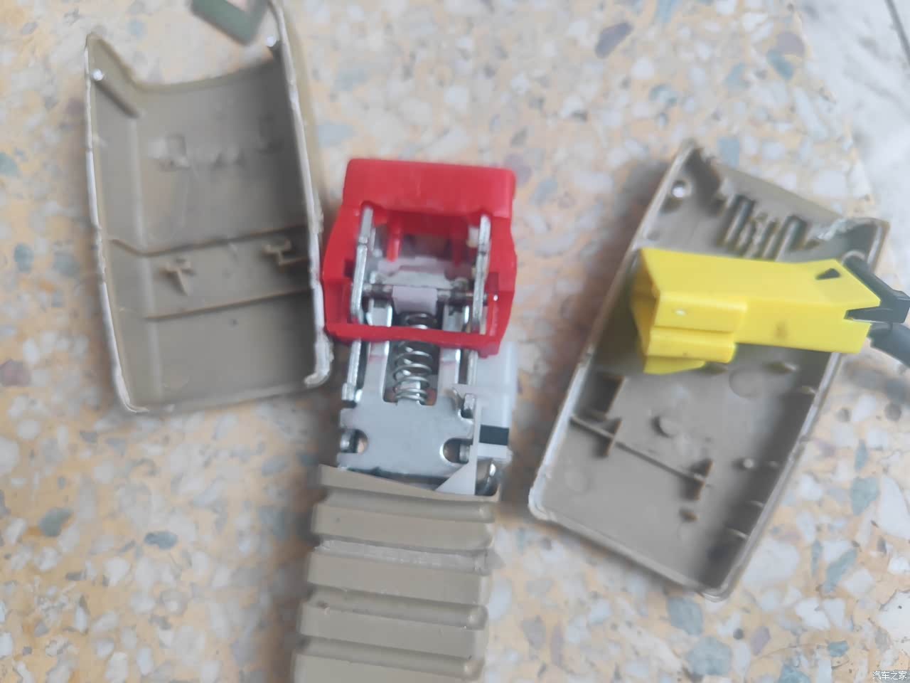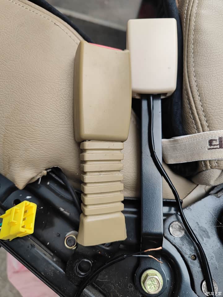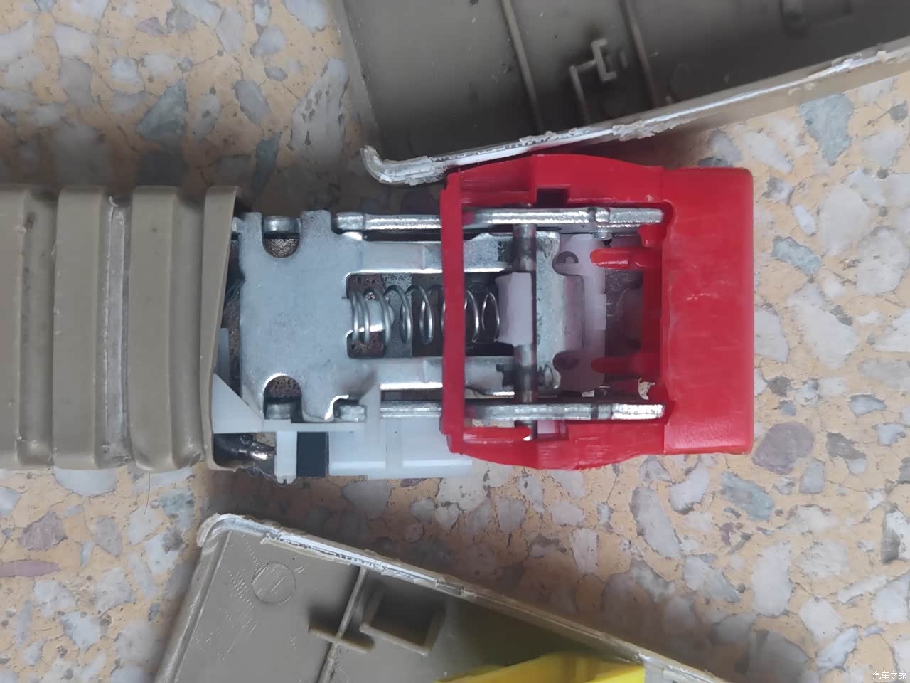 安全带插座用几年就不好用了,插进去拔不出来。拆开发现塑料件变形无法弹出来