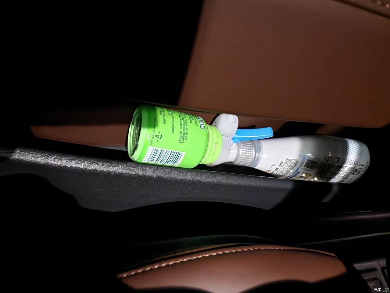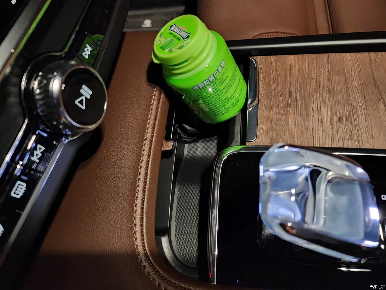 特意找了一瓶口香糖当参照物,测试了车内的主要储物空间。 点烟器处储物格