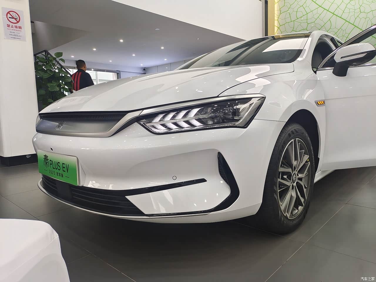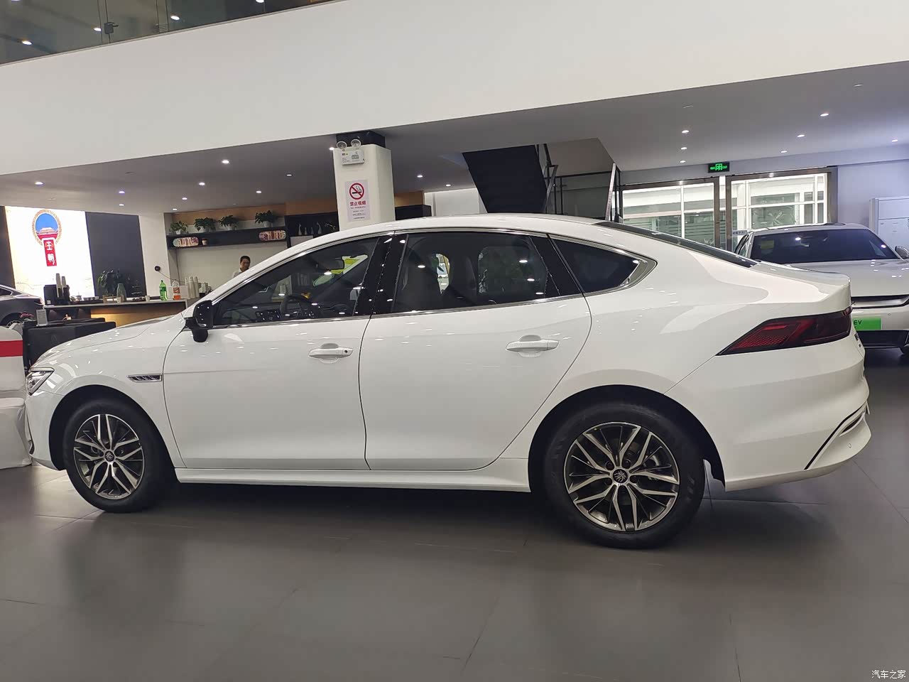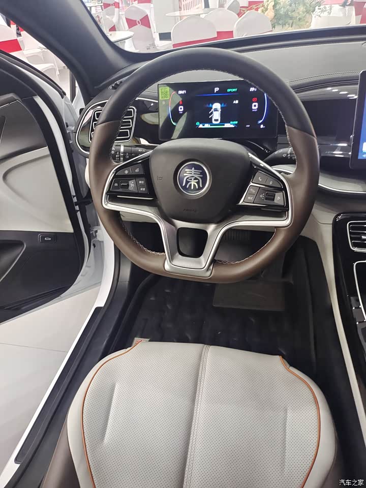 我算是比亚迪的老车主了,2020年底买的秦plus ev 500公里豪华型,开了三年觉得还不错,最大的特点是省钱,每个月电费也就是两三百块,每年做一次保养240,相比油车真的是太香了,唯一不满意的是我那款车内饰不喜欢,我喜欢亮的内饰颜色。最近听说国家补贴一万又延续了,送牌又送到年底,突然又想再换一款新车。于是找了个周末先到实体店里看看,还是去我原来买车的那家店吧,江杨南路比亚迪4S店,毕竟用车三年了这家店的服务还是不错的!原来的销售员已经调离,所以就没有和销售预约,开着我的老款秦直接到店里来了,保安叔叔冒着雨指挥我停车,销售员打着雨伞来接待我进店,这服务真的够贴心!进店后先给我安排了热咖啡和点心,销售员让我吃饱喝足再给我介绍看车。