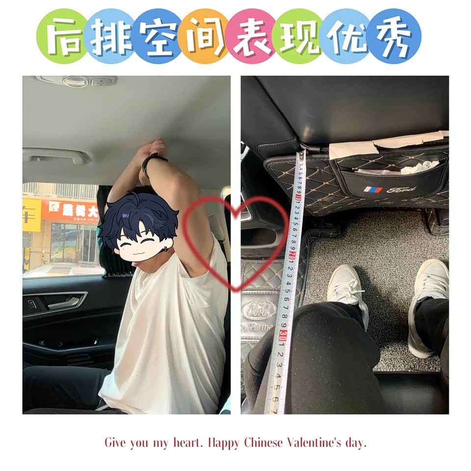 本人身高170cm,体重70Kg,主驾位调整好坐姿,头顶大概还有2拳半空间后排膝盖到座椅还有28cm的空间。后排正常坐姿头部还有2拳空间,后排乘坐特别宽敞。我家两个小孩子可以来回穿梭,有时还躺在下面玩,大人坐着翘个二郞腿都没有问题。座椅很宽大,对于我们这种小体格来说,包裹性很好,仿皮材质反而比皮质的更柔软,尤其是后排乘座舒适感极好,我媳妇当时就最看好这个后排座椅,我同事也夸赞二排座椅比宝马的X5的真皮软乎,钱花的值。因为是五座,后备箱真的很大,放过我和闺女的两辆大自行车,大号露营车都不用折叠可以直接塞进去。二排放倒用它搬过家,拉过床垫、床和冰箱,铺上露营床垫可以当床用,两大1小都能睡开。