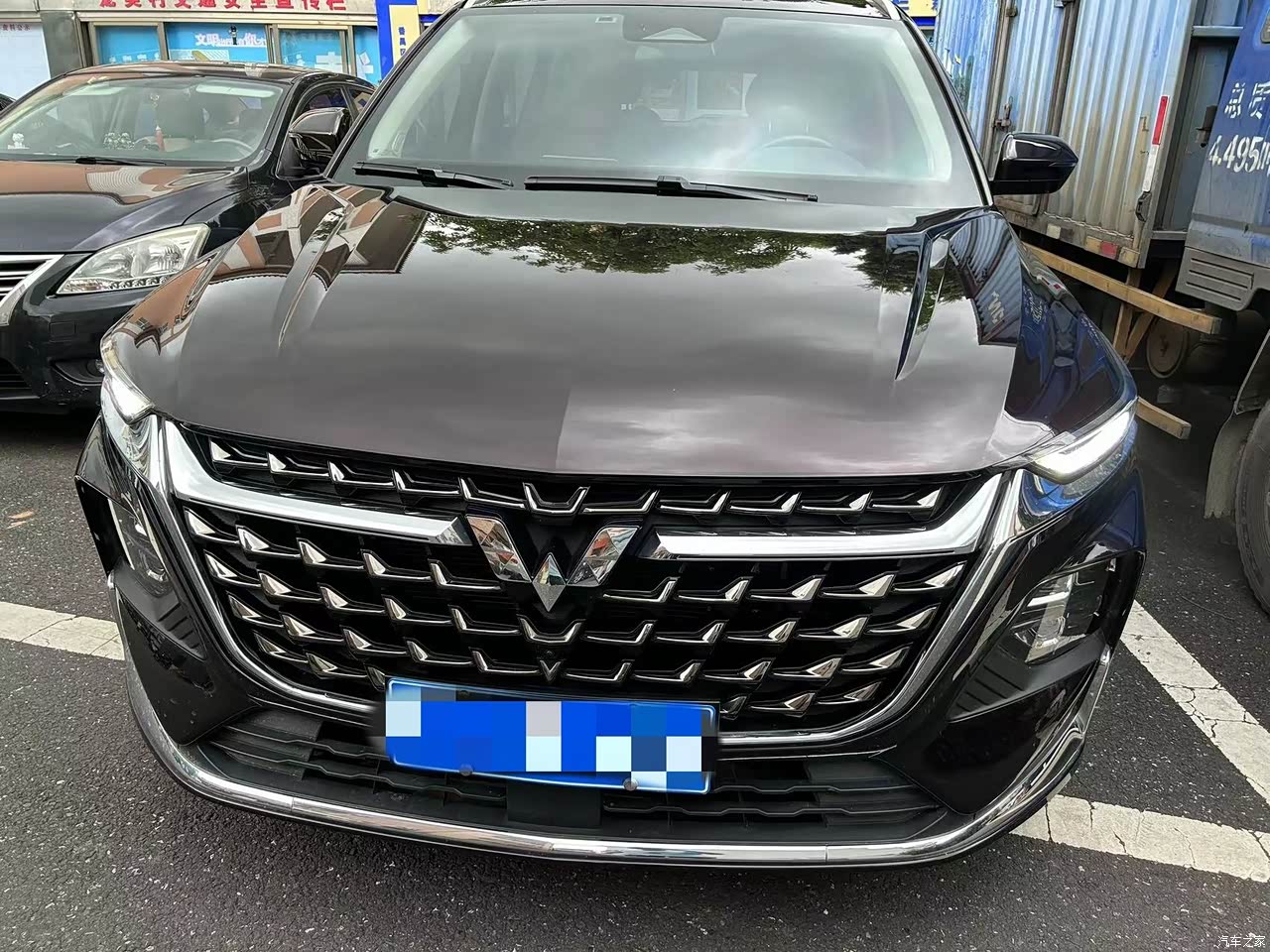外观还是很时尚的,我最喜欢的是前脸的造型,特别是他进气格栅设计很大气,五菱的标在前脸的正中央,非常醒目,各种各样的颜色让自己选,他的黑色非常的商务,看上去也很有范,特别有气势,拿来家用的话也非常不错,很低调的美。