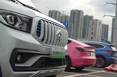 车头还是那么经典,一看就知道是长安的车。厢货的外观主要就是大,各个角度看过去都很宽大。中网跟燃油版神骐T30不一样,前脸中网有一些蓝色装饰件,我想这就是新能源的象征吧?