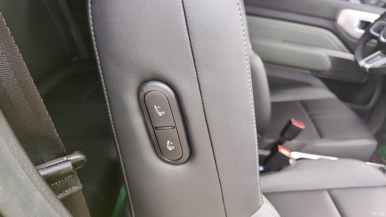 内饰的材质非常精致,黑色颜色为主的风格,前面有两块10.25英寸的屏幕组成的双联屏,感觉科技感很足,全都是皮质的座椅乘坐感满分,并且包裹感也还不错,主副驾驶都配备着电动调节按键,其中副驾驶位置上面还有一个一键挪移副驾驶座椅的按键。