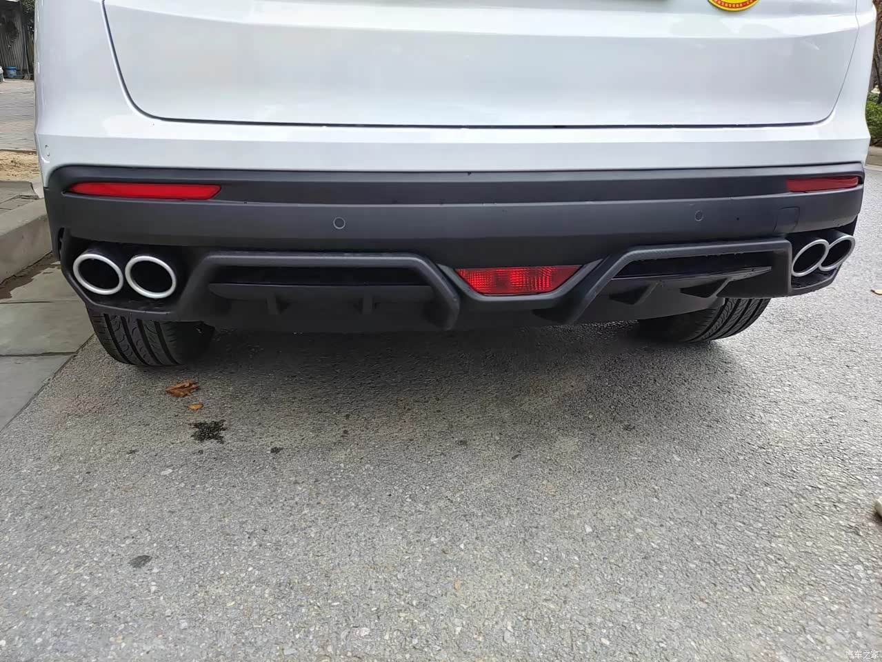 整体外观是处处带有运动感与精致感!我选的是白色的外观,利落大方,超大的车前脸黑色的大面积中网,犀利的大灯,硬朗的车身线条,双边4排尾,处处都在呈现出这年轻范儿和运动范儿,尤其那个别具一格得碳纤维包裹的倒车镜和镂空的小尾翼!