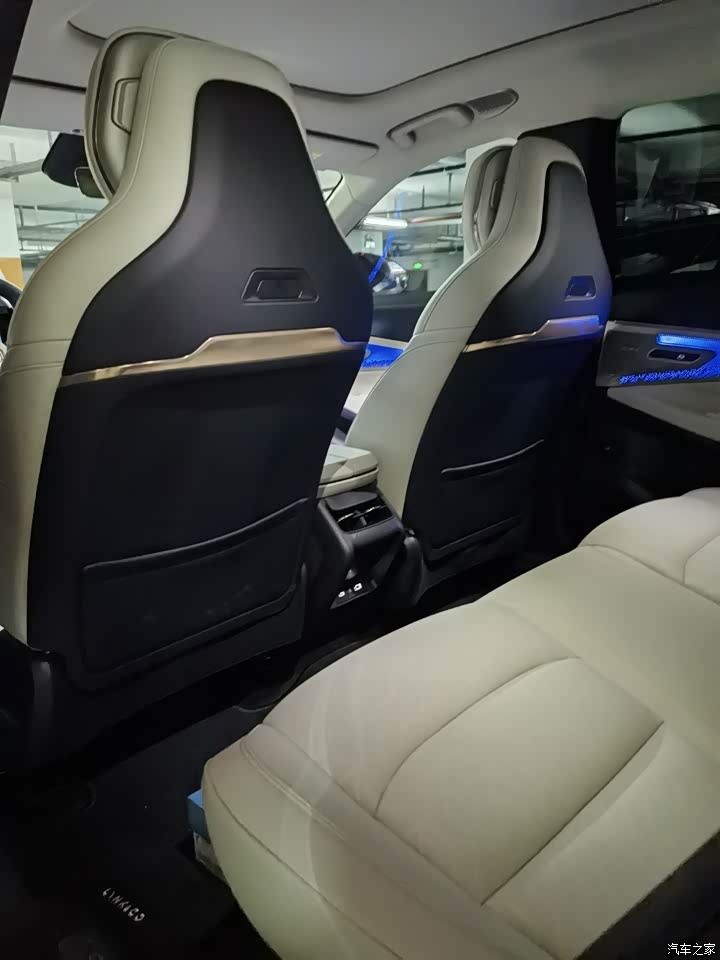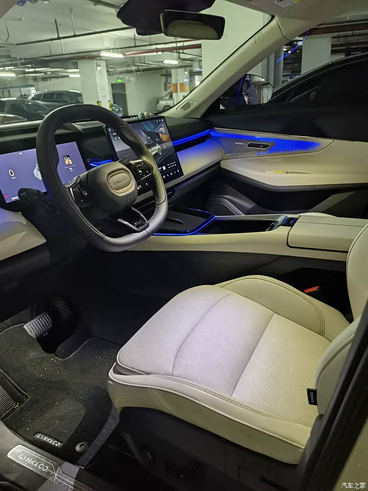 领克08的內饰用料非常好,车內沒有太多的硬塑料,加上全Nappa真皮的通风+按摩坐椅,我选的是浅色的內饰,看上去像黑白配的感觉!