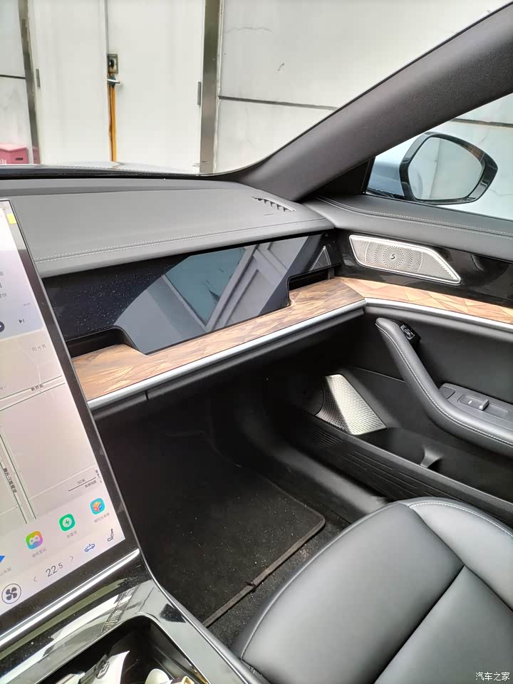 内饰拿到新车时也没什么味道,就感觉颜色单调了一点,那个木纹装饰我好喜欢