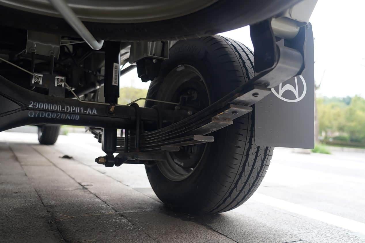 电子助力和空调这些基本功能都有,货车其实主要看底盘配置,这车底盘弓片数量比较多,我觉得很好,而且货箱内侧还有加强筋,这些都是肉眼能见的实用配置。