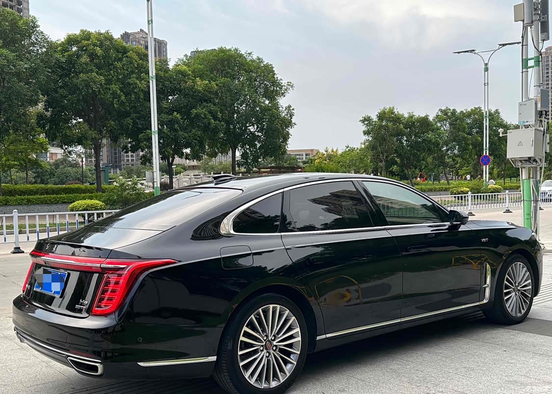 红旗H9的外观设计大气、时尚,车身线条流畅,造型美观且实用性高。车漆质量也非常好,光泽度高,给人一种非常高档的感觉。 车头采用了竖型镀铬饰条,搭配造型独特的进气格栅,非常精神、霸气。前大灯组采用了LED光源,照明效果好且寿命长。整个车头造型非常协调、统一。 车身腰线展现出优雅的流线型设计,力量感和运动感并重。腰线从前翼子板一直延伸到尾灯组,让整个车身看起来更加修长、大气。同时,车身腰线的设计也充分考虑了空气动力学原理,能够有效降低风阻系数,提高车辆的行驶稳定性。 车尾造型同样非常出色,采用了LED贯穿式尾灯,在夜晚点亮后具有很高的辨识度。尾灯组内部采用了复杂的光导纤维结构,能够实现多种点亮方式。