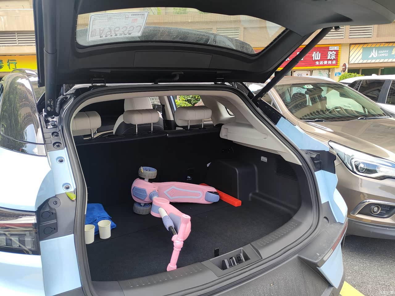 空间确实不错,宽阔。大。就是后备箱小了一点,可能被前面的空间压缩了。前面备箱不隔热,不好关。