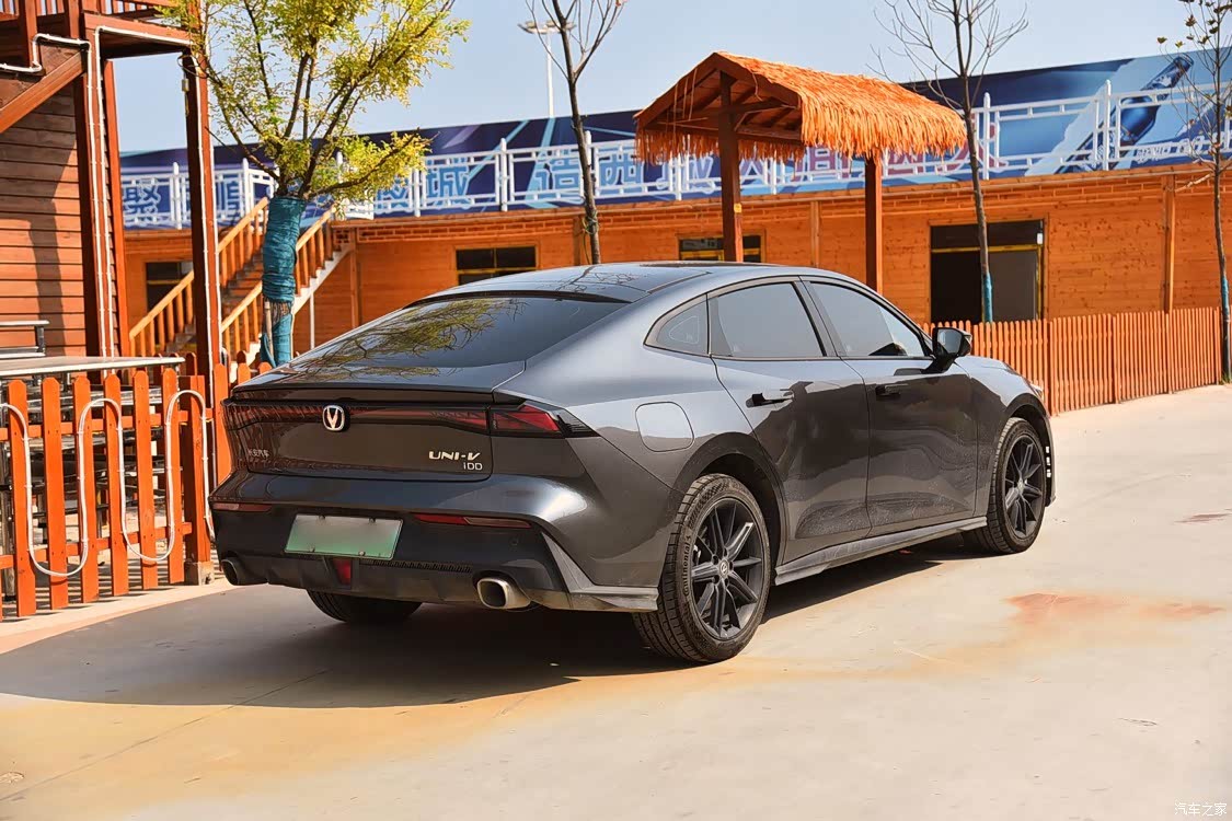 uni-v的外观设计我觉得别的都还好,就是从侧面看,轮胎的尺寸好像是小了一点,感觉有点头重脚轻,完全没有前脸车尾的嚣张感觉。车头保险杠位置的车漆也是有点薄,上次在村里被树枝子刮到了,居然还露了底漆,有点不能接受。