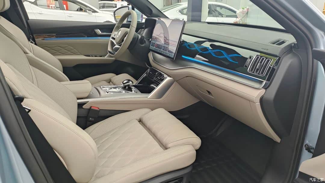 内饰用料好,做工细,基本也没有异味。座椅真皮包裹,坐在上面软硬中和,还可以缓解疲劳,主副座椅有腰部支撑。空调使用调节温度比较快,一会就能调节到舒适温度上,坐在上面轻松舒适。配置高,内饰颜色设计时尚,但是我是感觉车里面使用了太大面积的烤漆面板,会有适得其反的感觉。