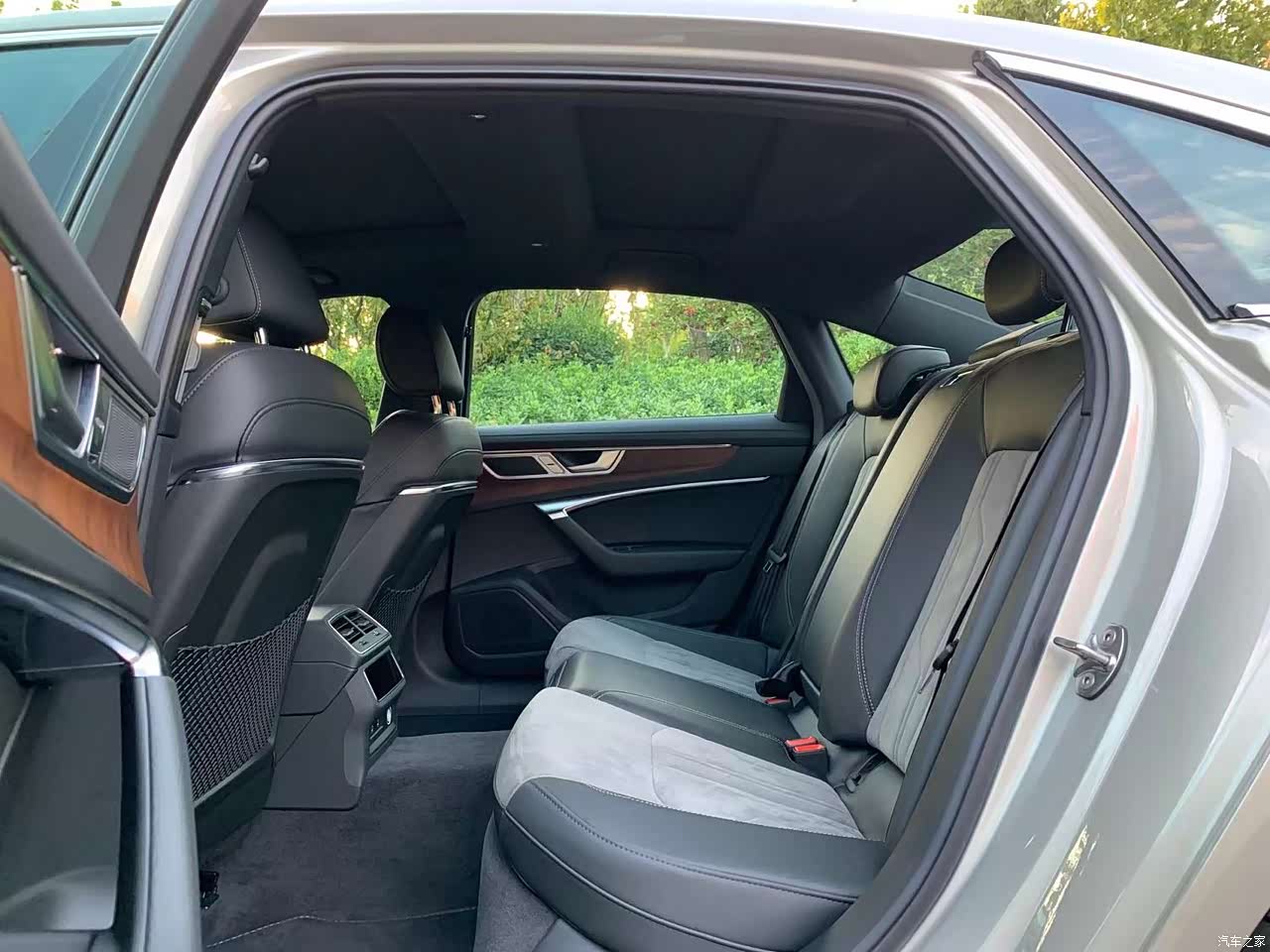 A6L也算是C级车中的标杆了,超过3米的轴距车内乘坐空间是非常大的,我身高173cm,在前排舒适位置下坐到后排,腿部空间还有3拳左右的距离,地毯的凸起比较高,后排坐2个人会很舒服。