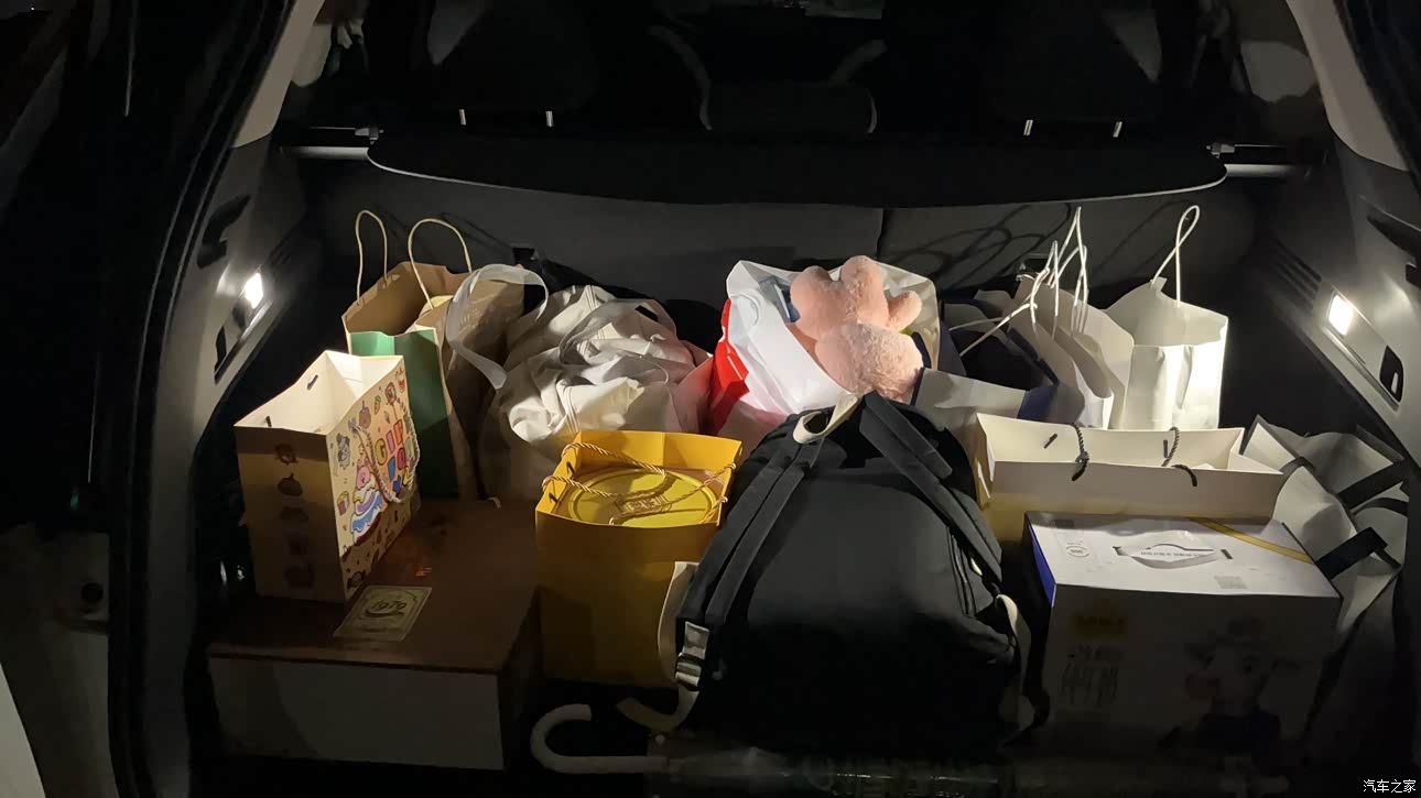 看图,后备箱空间真的很大,能装很多东西,就是非得把隔板往上架一下才能让后排放倒时跟后备箱保持全平的状态。