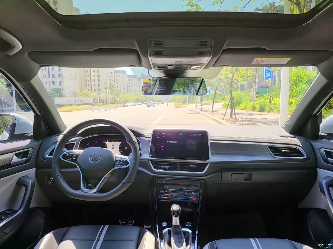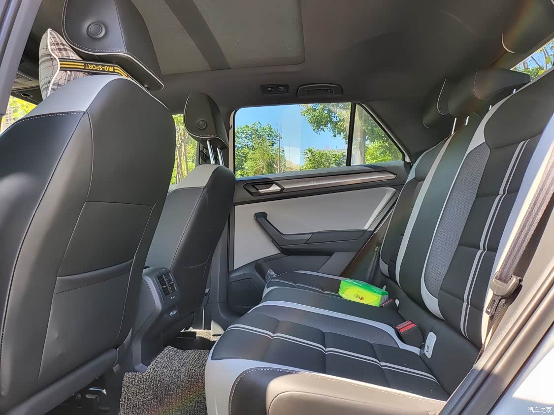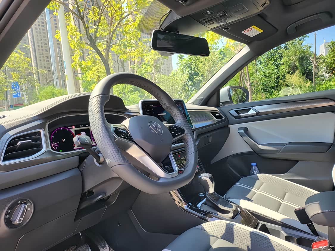 内饰是大众车一脉相承的设计风格,偏简约风。方向盘上面可用和有用的实体按钮比较多,很方便,屏幕偏小,显示面积也是这样。比较不喜欢的事换档位的那个把手,那个下面太容易藏灰了,还不好搭理。
