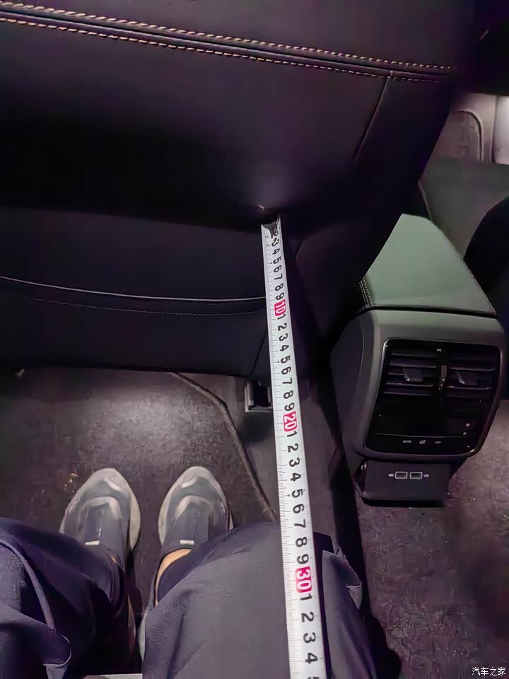 氛围灯有30色,下图可以看到。内饰用料是仿皮的,还行吧。稍微有点味道,新车可以理解。仿皮也可以。估计白色不好打理。舒适度么,总体还行,蛮宽大的。空调用过一次,冷的挺快。座椅宽大,舒适性还可以,我也没坐过好的。后排空间应该是蛮大的,一开始我没有发图片,审核不过关,后来干脆拿尺子量了下,也不用几拳,一个手臂了,尺子看的出来前排我调好驾驶位,后排我再坐过去,膝盖到前面座椅30㎝整。座椅加热通风目前还没用,应该可以的。座椅是打孔的座椅。