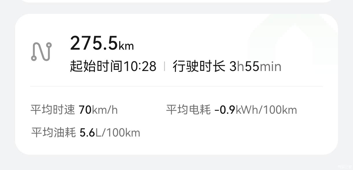 成都用车,冬夏空调都是正常用,不过一般都开的不是很热或者很冷。 问界传统反向虚标了,我的脚法比较温和,很少急加速急刹车,所以表显续航一般和实际续航是基本等同的,续航达成率接近 100%。 第二张是国庆回家的能耗情况,开的燃油优先。