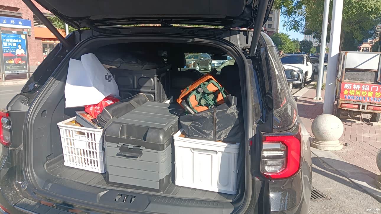 空间足够,第三排吐槽的事就不说了,网上都有,对于我们,这个空间已经完全满足我们的需要,一家人出行很够用。看看我们的装备,还没满呢