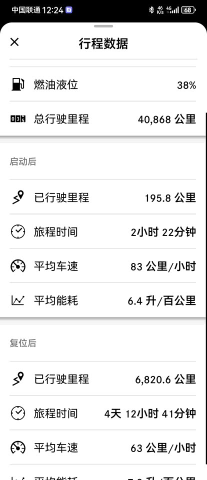 说到油耗真的绝对五星好评。城市基本上很少开,偶尔会看油耗,基本上市区我开控制在12升之内,这还是有堵车的时候。不遇到堵车我能开到10个油耗。高速开空调基本上控制在8升左右,下面一会我会截图为证。从唐古拉山下来到青海德令哈开过连续行驶四百多公里油耗居然达到六升多的。一箱油基本上每次我都是加满跑到九百到一千公里才去加油,基本上没有遇到油表灯亮过的。