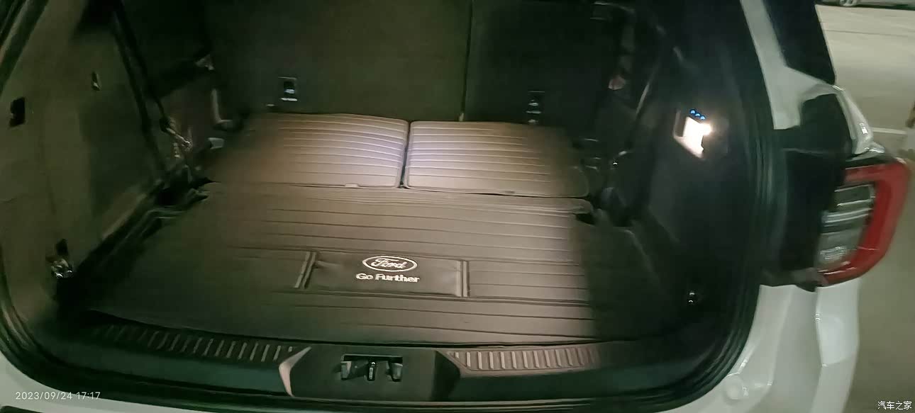 探险者车身很大,所以空间对于我来说是很满意的,后三排放倒空间富裕很大。还有这个第二排也很宽敞,轴距相对来说是很不错的。