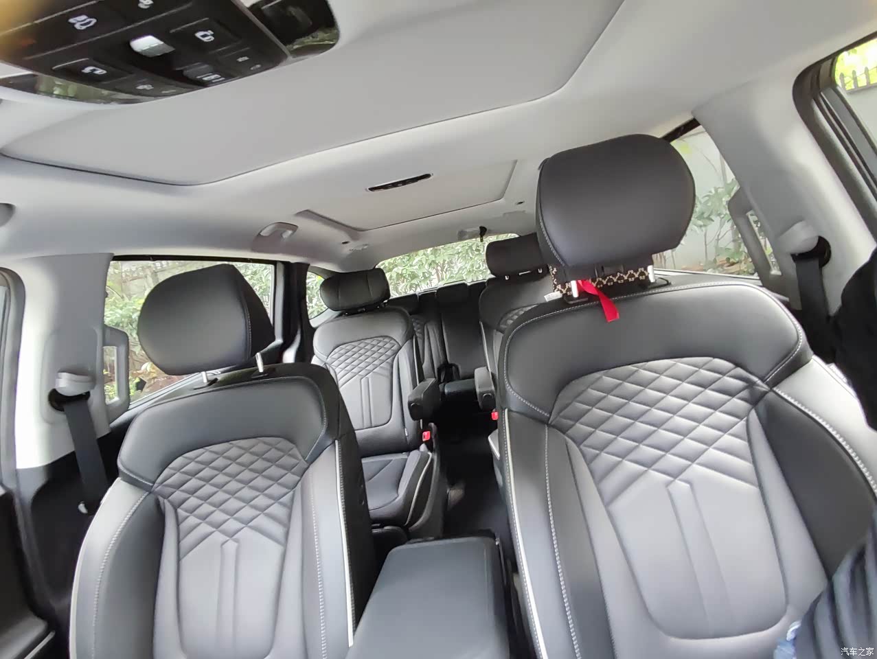 本人身高1米7,标准体重比,由于个子小,驾驶位较为靠前,这也给第二排三排留出了不少空间。满员乘坐,空间都较为充裕(也可能是没有特别高或特别胖的人)。二、三排与前排座椅均能保持至少两拳的距离。