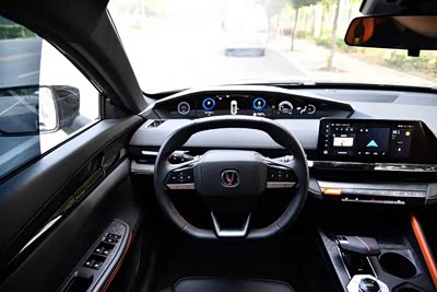 门板不算薄,上面都是软包,黑色和橙色拼色的内饰,其实我觉得没有灰蓝色看着高级,但主打一个耐脏,虽说长安UNI-V智电iDD的价格不算高,但是科技感是真心足,三合一的仪表盘人见人爱,蹭我车子的同事都是直夸仪表盘高级的。