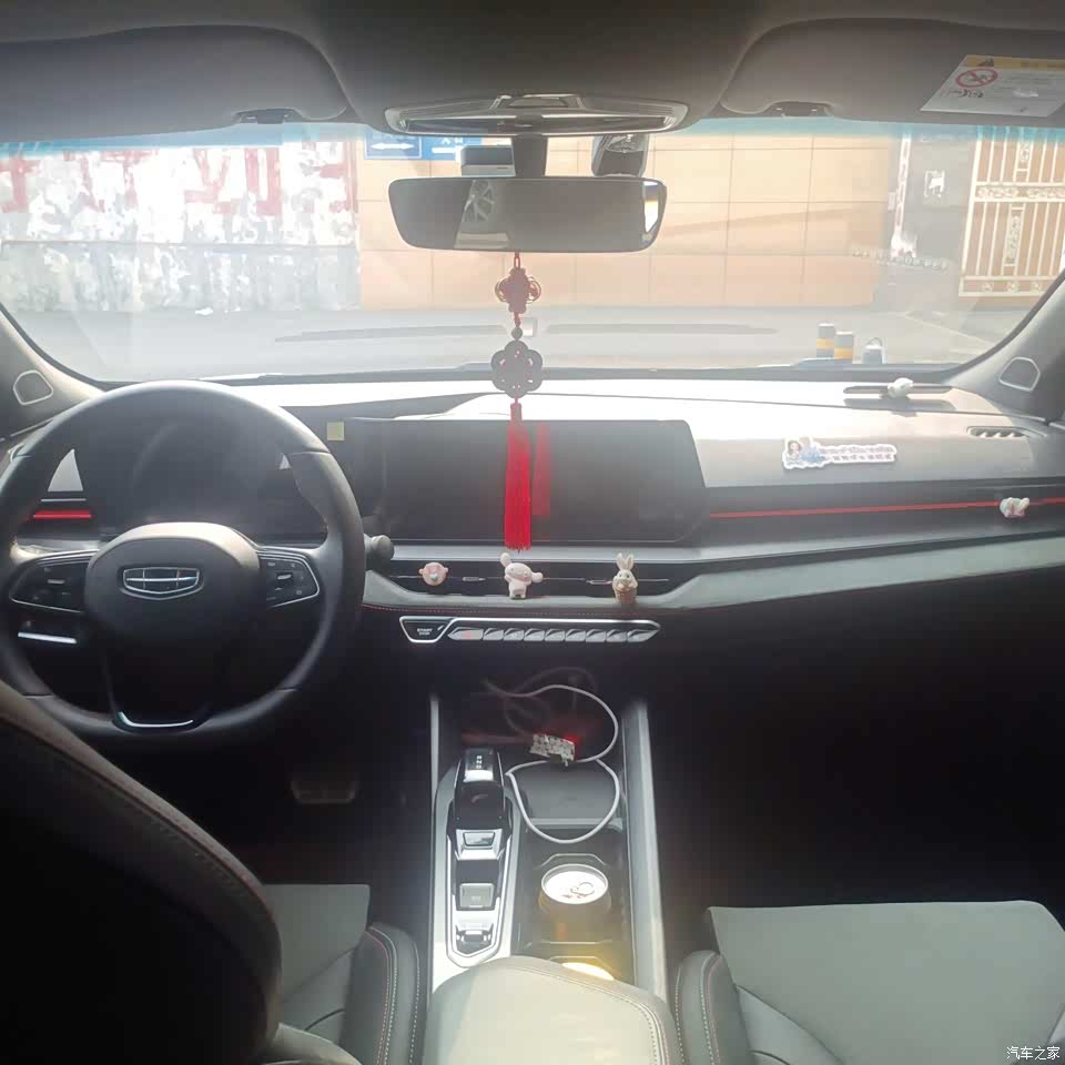 内饰颜色是灰 绿 橙色相接在一起的内饰一直是吉利做得非常棒的,空调效果不管是制冷制热都是很迅速的,整体的屏幕和按键质感很强,屏蔽是有三指飞屏,第二排座位空间也足够了我身高是比较大众化的坐进去一点不挤